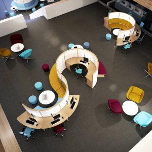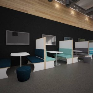 Whether in a business, education or leisure facility, O’zone provides areas for individual study, informal meetings and social gatherings. The curving construction creates private and communal spaces for touchdown working or longer periods of desk based study.